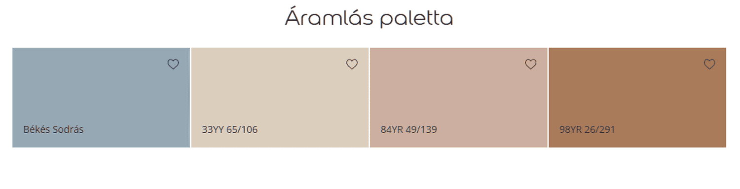 - Az Áramló paletta a természetes harmóniát idézi. Lágy átmenetek, finom tónusváltások és földszínek egészítik ki a kék alapot. Ha szereted, hogy otthonodban minden szín szépen összecseng, ez a választásod.